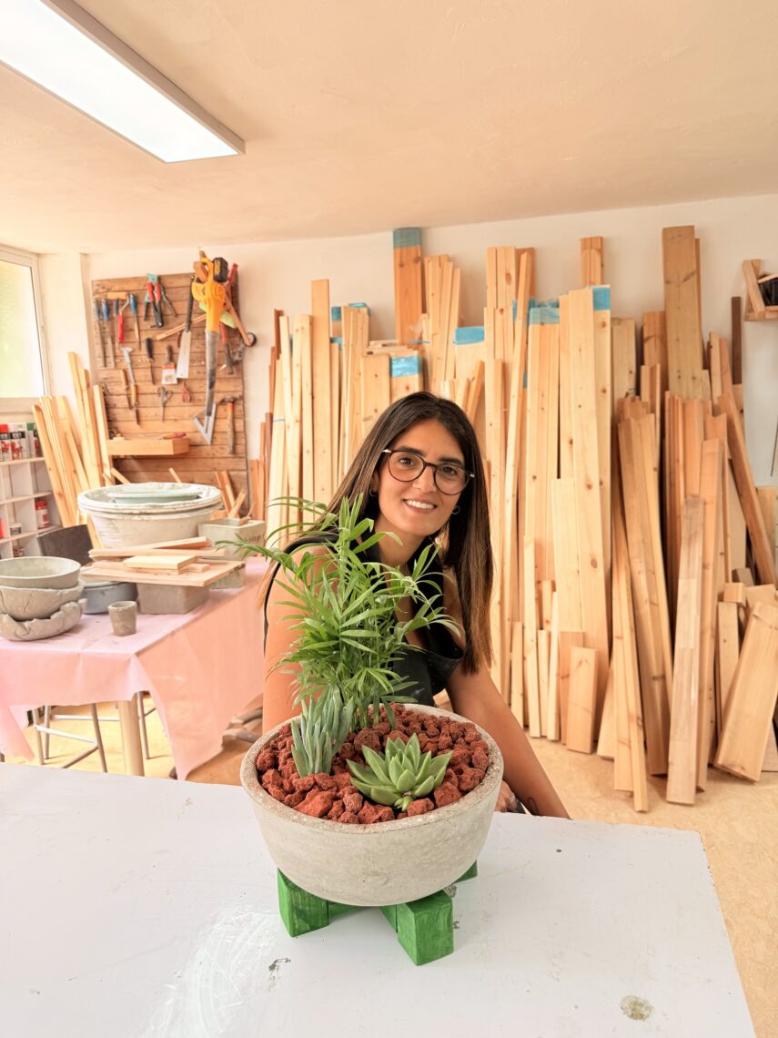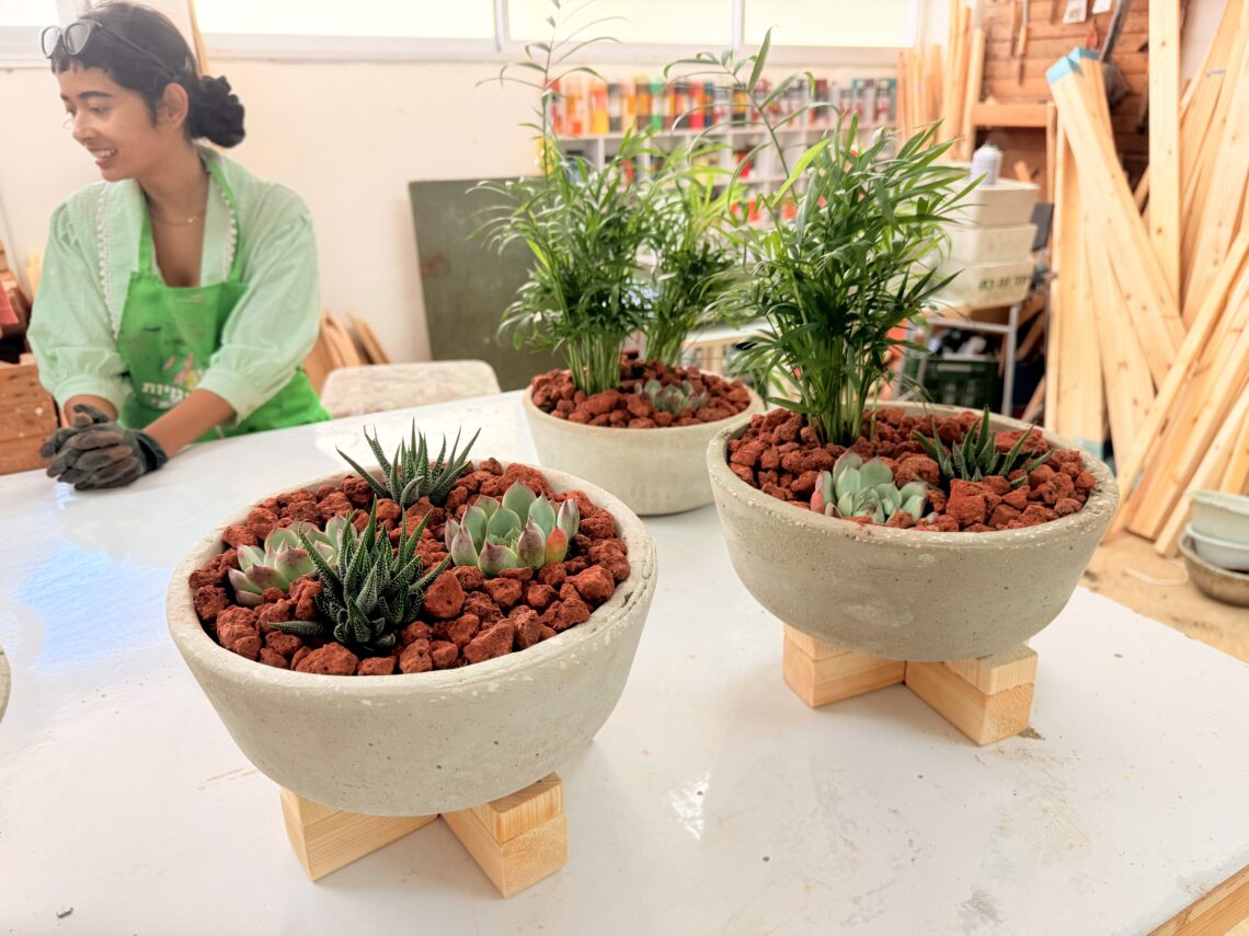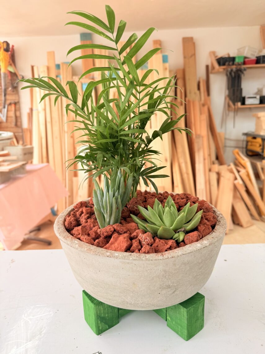 סדנת בטון ליצירת עציץ בטון על סטנד מעץ